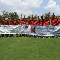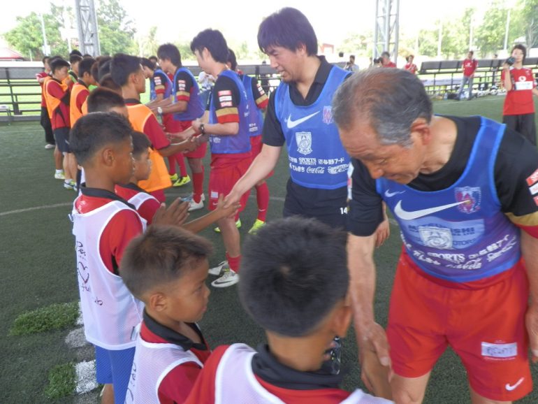 招待されたのは、いずれもロムサイFCの選手で、チェンマイにある福祉施設「バーン・ロムサイ」で暮らす子供たちや周辺に住む一般の子供たち。これまでは「ハートフルクラブ」のコーチ陣がチェンマイまでメンバーを訪ね交流を続けてきたが、日程の変更から今回はバンコクに招いての開催となった。
