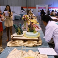 日本からも輸入代行業者らが多数来場。商品や取り扱い手順等について質問を繰り返すなど、熱心に展示品や商品説明に見入っていた。展示のほか、腕自慢のパティシエによるケーキ作りの実践競争も披露された。菓子素材から作った本物そっくりの「伊勢海老」などに人気が集まっていた。