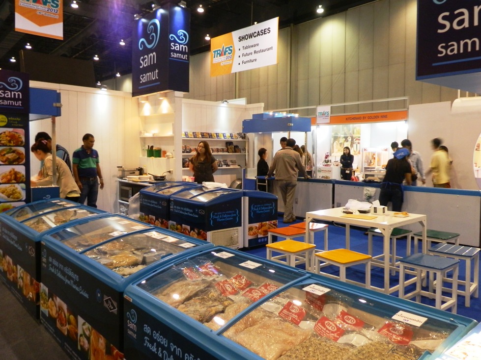 日本やタイ、アメリカ、アジアなど世界40数カ国から2万人を超えるバイヤーらが集まって例年、開かれているフードサービス業界展示会「Thailand Retail Food & Hospitality Service Show 2012」(TRAFS 2012)が25日、バンコクのイベント会場BITECで始まった。28日まで。